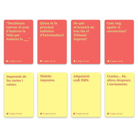 A Cagar a la Via es un party game para 4 a 15 jugadores en el que tendremos que proponer situaciones extrañas y divertidas para ganar la partida. Cada ronda el jugador iniciar juega una carta roja del mazo que sirve como introducción a una frase. Hecho esto, cada jugador deberá jugar una carta amarilla de su mano para completar la frase de la manera más divertida posible. Cuando se revelen las respuestas el jugador inicial dirá cual de las respuestas le ha parecido más graciosa y el jugador que la haya propuesto se llevará un PV. Al final de la partida el jugador con más puntos de victoria será el ganador. A Cagar a la Via es un juego canalla y lleno de humor negro, ideal para grupos de jugadores sin demasiados escrúpulos y que busquen echar unas risas con un juego casual y prácticamente sin normas.