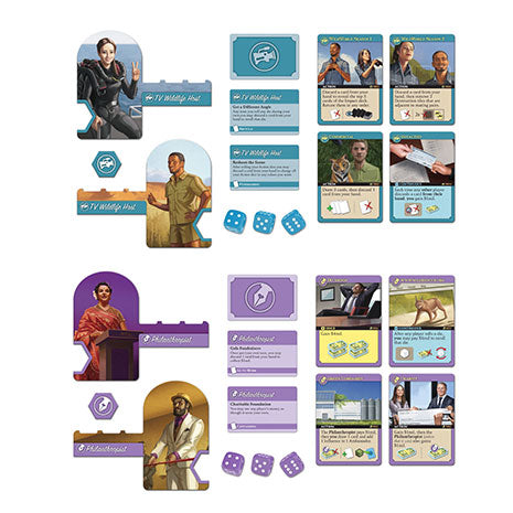 Endangered es un juego colaborativo para 1 a 5 jugadores ambientado en la problemática del cambio climático y las especies amenazadas. El objetivo del juego es salvar de la extinción la especie amenazada según el escenario de juego. Para ello deberemos influir en las Naciones Unidas para que los gobiernos se impliquen en la lucha contra la extinción. Al inicio de la partida cada jugador elige uno de los personajes disponibles, que le proporcionará habilidades especiales. Cada ronda los jugadores lanzaremos los dados y los colocaremos el las diferentes cartas de acción desplegadas: activar estas acciones nos permitirán mover los animales, influir en los diferentes embajadores y realizar acciones especiales para conseguir ventajas estratégicas. Al final del turno, siempre que tengamos dos animales juntos generarán un tercero, lo que hará que sean más numerosos y por tanto menos vulnerables. Pero también revelaremos una carta de evento que hará avanzar la destrucción y matará a los animales afectados. Endangered es un juego completamente colaborativo de nivel medio y buen rendimiento en todo el arco de jugadores, que trata la problemática de las especies amenazadas no solo desde un punto de vista biológico sino también político. Gracias a los diferentes personajes, diferentes especies y embajadores disponibles en el juego, ofrece una alta rejugabilidad. Quiero saber más.