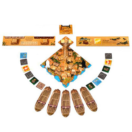 Imhotep. The Duel es un juego de estrategia para 2 jugadores adaptación de Imhotep, el juego ambientado en el Egipto faraónico. El objetivo del juego es ser el jugador con más puntos de victoria al final de la partida. Al inicio de la partida colocaremos en el centro de la mesa el tablero común, seis barcas y tres losetas boca arriba en cada una de ellas. En nuestro turno los jugadores podremos colocar uno de nuestros peones sobre el tablero en cualquiera de las nueve casillas que esté disponible. También podremos reclamar el contenido de una barca si la fila o la columna a la que pertenece tiene al menos dos peones ya colocados. Cada tipo de loseta que consigamos la colocaremos en el tablero de puntuación correspondiente y nos dará puntos de victoria en función del tipo, o nos permitirá ejecutar acciones especiales que nos darán ventajas en el juego. La partida termina cuando entre los dos jugadores se han repartido todas las fichas de juego, momento en el cual se hace el recuento final. Imhotep. The Duel es una buena adaptación de Imhotep ya que conserva la esencia del juego multijugador adaptando mecánicas a partidas con solamente dos jugadores. Basado en una mecánica clásica de set collection, se trata de un juego abstracto de normas sencillas y lleno de decisiones y planificación a corto y medio plazo. Como Imhotep, dispone de tableros de puntuación a doble cara para dar mayores posibilidades y rejugabilidad al juego. Quiero saber más.