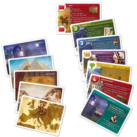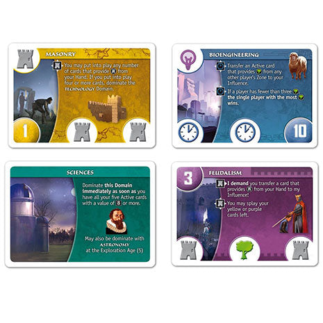 Innovation. Third Edition es la tercera edición de Innovation, el juego de cartas para 2 a 4 jugadores en el que deberemos desarrollar nuestra propia civilización a base de adelantos técnicos y otras innovaciones culturales. Al inicio de la partida dividiremos las cartas de juego en los diez mazos numerados: cada uno representa una era del conocimiento humano e incluye cartas de los adelantos más representativos acontecidos en ese momento. Partiendo de una mano inicial formada por mazos de la primera Era, los jugadores podemos robar una nueva carta, jugar una carta de nuestra mano o ejecutar la acción de una de las cartas que hayamos jugado previamente. Estas se dividen en cinco tipos y solo puede haber una activa por cada uno de ellos. Las cartas nos dan a demás diferentes iconos que tendremos que ir acumulando para lograr los objetivos de victoria. Pero no solo eso, ya que si tenemos igual o más iconos del tipo requerido cuando otro jugador ejecuta una acción especial la llevaremos a cabo nosotros también con los beneficios que esto puede reportarnos. Innovation. Third Edition es un juego de formato pequeño pero estratégico y lleno de decisiones e interacción, en el que no solo tendremos que desarrollar nuestro juego sino también controlar el de los demás jugadores. Quiero saber más.