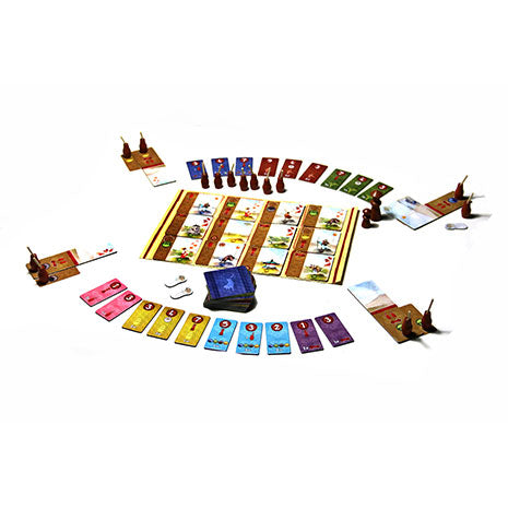 Kanagawa es un juego de estrategia para 2 a 4 jugadores en el que seremos pintores de la corte feudal del Japón medieval. El objetivo del juego es ser el jugador con más puntos de victoria al final de la partida. Y para hacerlo deberemos pintar la mejor obra y conseguir tantos bonus como sea posible. Cada ronda pondremos en juego cartas del mazo de robo en el tablero central y los jugadores podrán robar todas las cartas de una columna y añadirlas a su mano, o pasar. Algunas cartas, dependiendo de su ubicación en el tablero, estarán boca abajo, pero su reverso nos dará pistas sobre qué tipo de carta nos encontraremos. Con las cartas que hayamos robado podremos jugarlas como parte de nuestro paisaje pagando los recursos adecuados o ponerlas en juego como recursos o acciones especiales. Al crear el paisaje ganaremos puntos de victoria si somos capaces de jugar varias cartas de la misma estación. Pero a demás podremos reclamar las losetas de bonus cuando nuestro paisaje incluya los elementos requeridos para ello, lo que nos dará puntos de victoria adicionales al final de la partida. Kanagawa es un juego de estrategia de nivel medio basado en un draft de cartas y una mecánica sencilla de colección de ítems y consecución de objetivos, con una estética y componentes alucinantes. Quiero saber más.