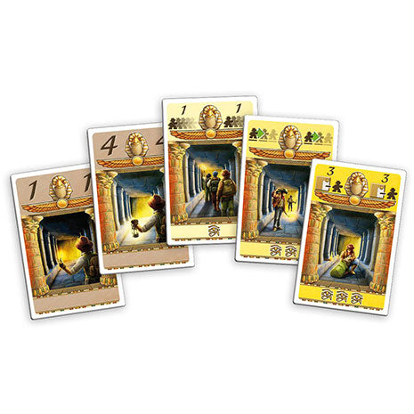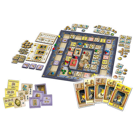 Luxor es un juego de estrategia para 2 a 4 personas ambientado en el Antiguo Egipto. Los jugadores ganarán puntos de victoria siendo los más rápidos en llegar a la cámara funeraria y recogiendo por el camino los diferentes objetos que vayan encontrando. Cada jugador tiene cinco cartas en su mano y en su turno debe jugar una de las dos situadas en los extremos de su mano. Cuando robemos nuevas cartas estas irán al centro de la mano, haciendo que éstas vayan progresivamente estando a nuestra disposición. Estas cartas nos permitirán mover nuestros peones por el tablero, ya sea moviendo el número de casillas que nos dice la carta así como aplicando algunos sencillos movimientos especiales. Comenzaremos la partida con dos peones y, a medida que avancen los turnos, iremos consiguiendo más. Para lograr los objetos que nos darán puntos al final de la partida deberemos conseguir que sobre la loseta en cuestión terminen un número concreto de peones, por lo que deberemos pensar en conjunto y no centrarnos solamente en avanzar con uno de nuestros peones hacia el final del recorrido. Luxor es un juego estratégico sencillo, pero que nos propone decisiones cada turno, obligándonos a tener en cuenta las diferentes maneras de conseguir puntos, sin perder el espíritu familiar que lo ha llevado a finalista del Spiel des Jahres del 2018. Quiero saber más.