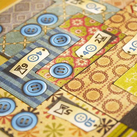 Patchwork es un juego para 2 jugadores en el que deberemos completar nuestra tela con los retales que nos den más puntos de victoria. Cada jugador dispone de un tablero de juego individual donde deberá ir colocando las fichas de tela que ronda a ronda vaya comprando. Éstas se disponen de manera aleatoria al comienzo de la partida y varían en forma, coste y botones, por lo que deberá elegir bien cual compra en cada momento. Además, todos los espacios de nuestro tablero de juego que dejemos sin ocupar nos darán puntos negativos al final de la partida. El turno de juego y los ingresos que recibamos para comprar nuevas fichas dependerá del gasto que vayamos haciendo: comprar losetas muy caras le dará a nuestro oponente más turnos y, en consecuencia, más compras. Patchwork es un juego equilibrado y 100% estratégico, sin sitio para el azar, que hará las delicias de los jugadores que disfrutan buscando la jugada óptima en cada momento del juego.