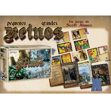 Tiny Epic Kingdoms es un juego de selección de acciones, conquista y gestión de recursos para 2 a 5 jugadores perteneciente a la mítica serie de juegos Tiny Epic ambientado en un mundo de fantasía. El objetivo del juego es conseguir el máximo número de puntos de victoria al final de la partida. Cada uno de los jugadores controla una raza fantástica asentada en un territorio y deberá, realizando las acciones disponibles, conseguir los recursos necesarios para obtener las mejoras que le darán los puntos de victoria. Por orden de turno, cada jugador selecciona una de las acciones disponibles: si no quiere realizarla siempre tiene la opción de conseguir recursos y llenar sus reservas de cereales, piedra o mágia. Una vez se ha hecho una acción, ésta no podrá volver a hacerse hasta que se realicen un total de cinco. Patrullando o explorando podrás llevar a tu población a regiones donde se encuentre otro de los jugadores, momento en el cual estalla la batalla. Pero siempre tienes la opción de ser un pueblo pacífico, mostrar la bandera blanca y compartir los recursos de manera amistosa. Solamente cumpliendo una de las condiciones de final de partida ésta termina: ¡deberás estar atento y calcular cuando y como te conviene cerrarla! Tiny Epic Kingdoms es un juego que concentra un respetable grado de estrategia en partidas rápidas donde la interacción en los turnos de los otros jugadores es vital y en el que la variedad de cartas de raza y de terreno nos aportarán gran jugabilidad. Tiny Epic Kingdoms es un juego de la serie Tiny Epic, grandes juegos en cajas pequeñas. Quiero saber más.