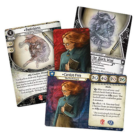 To Fight the Black Wind. Arkham Horror es una novela correspondiente a la serie de Arkham Horror Files. La historia gira entorno uno de los personajes más populares de la serie, la psicóloga Carolyn Fern, y los enigmáticos sueños de una de sus pacientes. A demás, To Fight the Black Wind incluye cartas promocionales de Arkham Horror. El Juego de Cartas con arte alternativo que podrás incluir en tu colección. Ir a la colección completa.