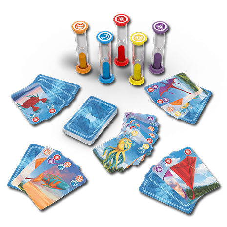 Cometas (aka. Kites) es un juego familiar colaborativo para 2 a 6 jugadores en el que tendremos que conseguir que todas las cometas estén en el aire al mismo tiempo. Los jugadores disponen de cartas en su mano de diferentes colores, que representan las diferentes cometas. En el centro de la mesa tendremos relojes de arena de los mismos colores: tendremos que jugar cartas de nuestra mano coordinándonos con los demás jugadores para hacer que todos los relojes estén en marcha al mismo tiempo. Cometas es un juego completamente colaborativo con el factor tiempo real, caótico y lleno de intensidad, con partidas cortas y reglas sencillas ideal para todo tipo de público. Dispone de cartas para aumentar el nivel de dificultad y hacer que cada partida sea un reto. Y con el inconfundible arte de Beth Sobel. Quiero saber más.