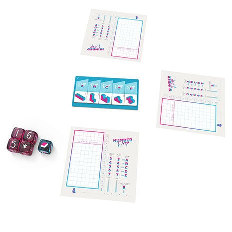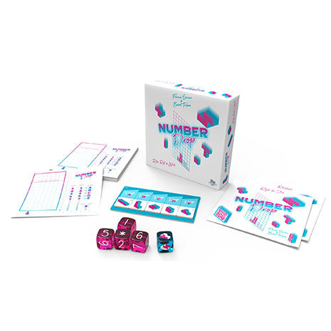 Number Drop es un juego de dados para 1 a 6 jugadores. El objetivo del juego es ser el jugador con más puntos al final de la partida. Y para hacerlo deberemos colocar de la manera más eficiente los dados en nuestra hoja de jugador. Al inicio del su turno, los jugadores lanzarán los dados y usarán los resultados para realizar su jugada: cuatro dados tienen valores numéricos y el quinto define la forma en la que tendremos que agruparlos. Una vez creada la forma la dibujaremos y escribiremos los números en nuestra hoja de jugador, consiguiendo puntos agrupando los números. Cuando un jugador alcanza el borde superior de la cuadrícula de su hoja de jugador, la partida termina y se hace el recuento de puntos. Number Drop es un juego familiar abstracto de estilo roll and write que introduce los poliominos al más puro estilo Tetris. Pese a que propone el elemento azar por la tirada de dados, es un juego lleno de estrategia y de toma de decisiones gracias a las múltiples combinaciones de dados y formas. A demás, al introducir el elemento espacial, consigue que a medida que avanza la partida esas decisiones sean cada vez más y más complicadas. A demás, a diferencia de la mayoría de juegos del estilo, ofrece un alto grado de interacción entre jugadores gracias a las losetas que podremos colocar en la hoja de juego de nuestros rivales. Quiero saber más.