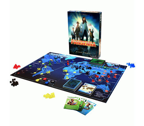 Pandemic es un juego colaborativo para 2 a 4 jugadores ambientado en época actual. Los jugadores toman el control de diferentes especialistas en el control de epidemias y emergencias que deberán coordinarse para sofocar la amenaza de una enfermedad que se expanda a nivel mundial y erradique a la humanidad. Deberán desplazarse por el tablero y utilizar sus habilidades especiales para evitar el contagio masivo. Parece que todo está bajo control, pero ¡los síntomas aparecen en otra ciudad! Al final del turno de los jugadores la enfermedad pasará de una ciudad tras girarse una carta de propagación.